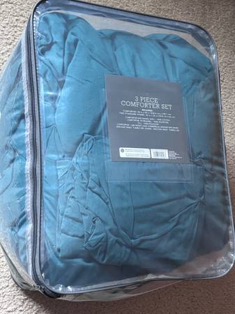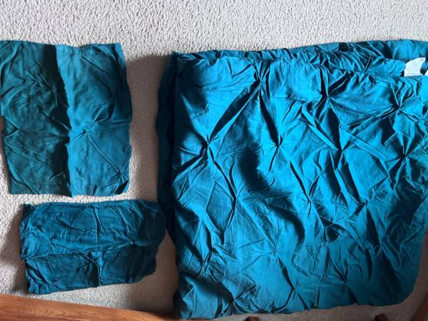 Queen size comforter and two pillow shams. Threshold. Smoke and pet free home. Clean and ready to use.