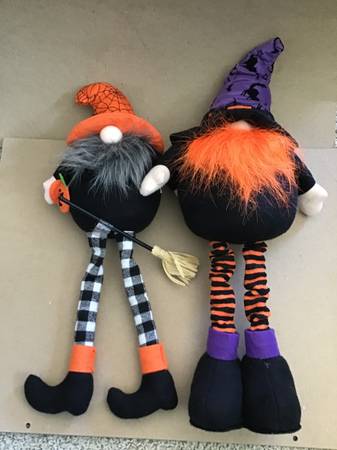 Two Halloween gnomes. Both in good condition, but the broom is loose. One is about 20 inches tall and the other is about 22 inches tall. $20 for both.