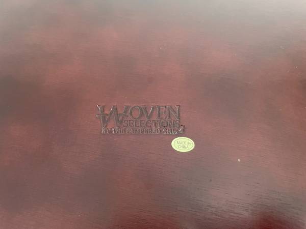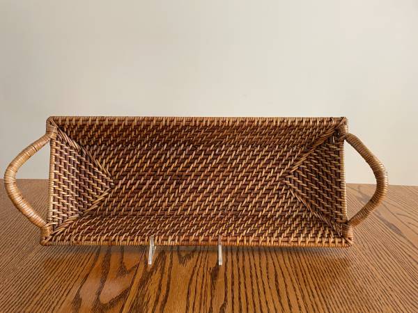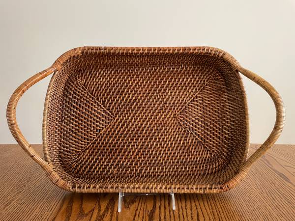 PC Woven Selections Rectangular Serving Basket/Tray with Handles 17" X 7" $15.00 - was displayed periodically on dining table with rotating seasonal items. Holds the 16" x 6" stoneware tray/platter as pictured.