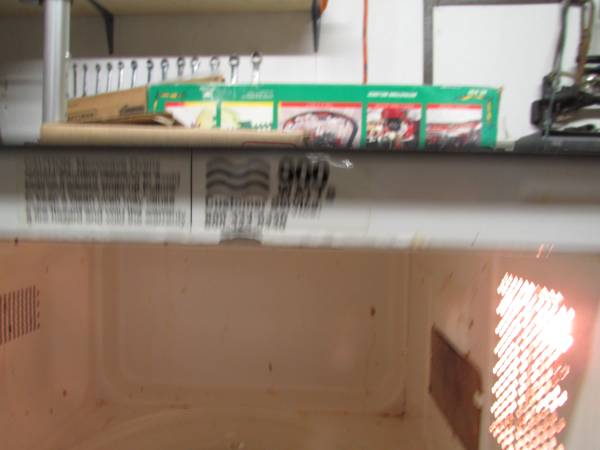 Used in a garage so it needs a good cleaning but it works great. This is either a .7 or a .9 cubic foot unit with several preset buttons for popcorn, pizza, soup, etc. There are a few listed online with prices ranging from $63.32 to $45.23 but they are cleaner than this one. If I take the time to do a thorough cleaning, I will change the price up towards the $45 area. Spend the time to clean it yourself and save the money. They made this model in both .7 and .9 cubic foot models but the outside dimensions match the .9 model but it does not say it anywhere on the oven that I could find but the 900 watt label is clean and clear to eliminate any question on power rating.