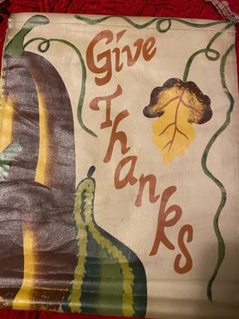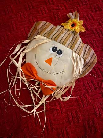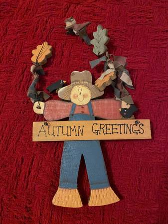 Various Fall Decorations Read each description and their specific listed prices. Or all for $13 ~Wood Autumn Greetings Sign $6 ~Scarecrow Head, made from fabric. Has hanging loop $6 ~Give Thanks...