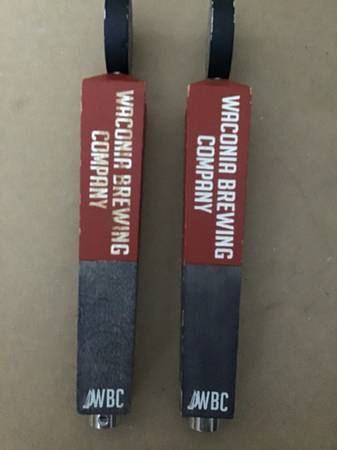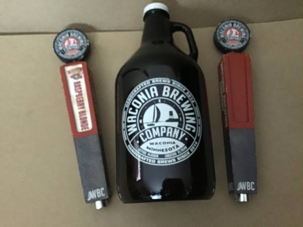 Two tap handles and one growler from the Waconia Brewing Company. The tap handles were used in a bar, so they show some wear.