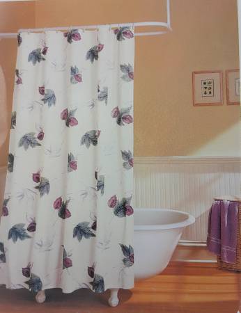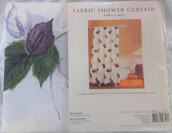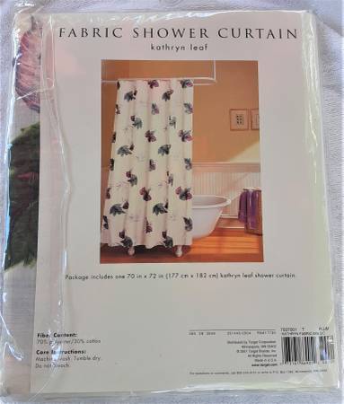 Fabric Shower Curtain, Target brand, Kathryn Leaf, Plum color. 70" x 72". 70% polyester, 30% cotton. NEW in original packaging. I have 4 available. Purchase one or more. Cash or Venmo with pick up...