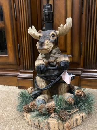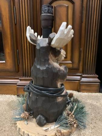 Moose lamp made of resin, but looks very much like it was cut out wood. Holds a 60 watt bulb max. NO shade, it’s in excellent condition. Measures 15.5 inches tall to top of where the bulb screws in and is roughly 9 inches in circumference of the base. No chips, breaks or repairs. Comes from a smoke free home. Can meet evenings and weekends in Linwood. All communication will be through Craig’s list email exchange. Please watch your junk mailbox for responses. Cash only payment.