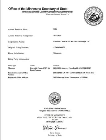 We are Minnesota Secretary of State Registered (see photo), fully Licensed, Insured and Bonded. Serving the Twin Cities area for over 20 years!