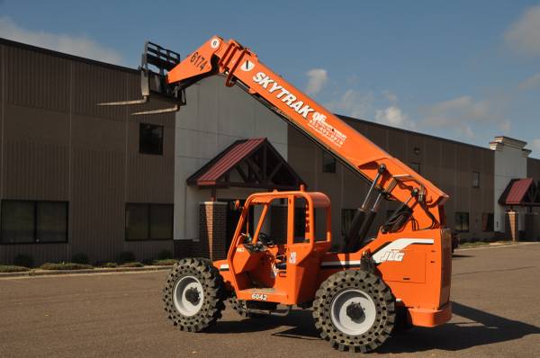 Skytrack forklift available for rental. A forklift basket is also available at $195 a month rental. The machine can be delivered to your jobsite for a fee