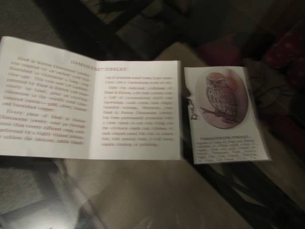 I originally purchased this pendant in 1978 for $75. It comes in the original felt covered gift box and I have the insert that describes the makeup and steps in its manufacture. It has a 24 inch chain attached to wear around your neck. The pamphlet notes 24 Kt Gold electroplate, pure Silver, burnished Copper on Bronze. It is coated with a clear epoxy finish so it will never tarnish.