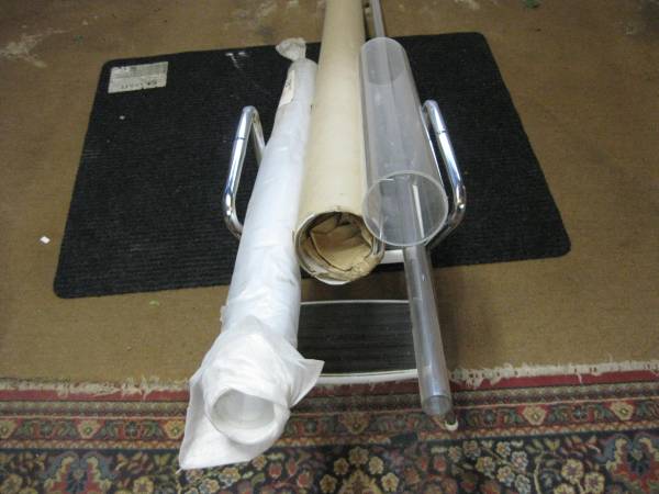 120 ft in six and eight foot lengths. 1 3/16 to 4 3/4 inch diameter. 1/8 to 1/2 inch wall thickness. Prices $1 to $10 per foot. NEW not used. Great for the hobbiest or craftsman. (will cut) Also 1 piece 16" dia half round x 38" long fiberglass tube. $20.00 Offers accepted for entire lot.