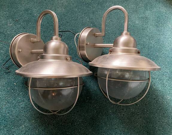 2x like new outdoor lights for sale. Generation Lighting, Sebring 1 8” wide, brushed stainless Overall: 13 x 9.5 x 9.5 Retails for $175+ ea, asking $200 for pair Cash Only - Pick up Only Thanks