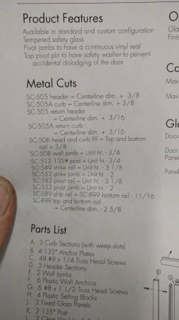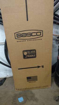 New in box Basco shower door and side glass walls silver trim 250.00 each no base or shower walls.