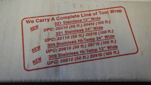 New in the box. Stainless steel heat treating foil. 24 inches wide x 50 feet long. UPC No. 20110. Machine, tools, die, dies, welding, hardening, preventing decarburization, scaling protection,...