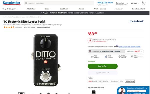 Available for sale is a brand new Ditto Looper. I purchased and tested it but ended up not using it. So the item is brand new. This item brand new is sold online or at guitar shops for $84 before tax and shipping.