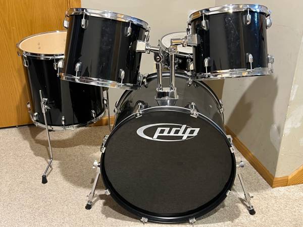I’m selling off my extra drum set. PDP 5 piece in black with chrome trim. Good condition and all hardware is functional. No stripped threads! 22” kick drum, 16” floor tom, 12” and 13” rack toms, 14” snare with stand. Just the drums you see. No other hardware. I can probably hook you up with hardware locally if you need it. Perfect starter kit for someone who wants to try playing drums but doesn’t want to invest too much money. $125 or best offer takes it home! Please feel free to contact me with any questions. Thanks!