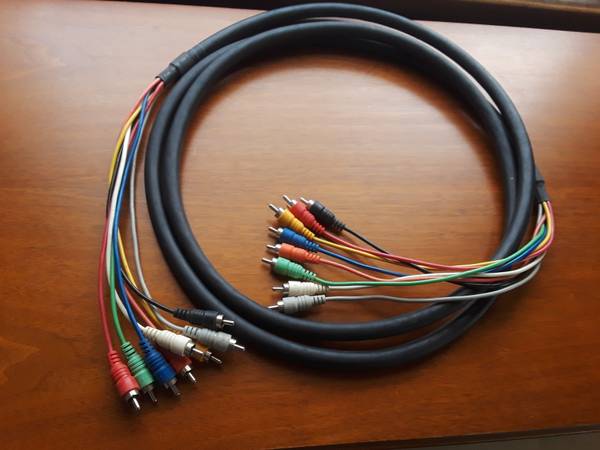 RCA to RCA cable and 1/4" tip,ring,sleeve to 1/4 cable,$20 each. Like new,not made in China.