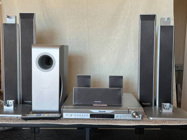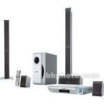 Contains a combined 5-Disc DVD/CD player and A/V receiver, two front slim tower speakers, two surround satellite speakers, a center speaker, and a powered subwoofer that combine to create an encompassing sound field full of acoustic ambiance and smooth, thumping bass.
