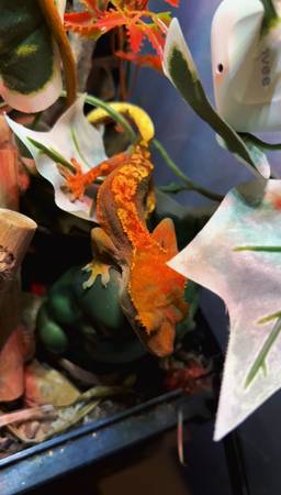 Rehoming my little female crested gecko, I got her in Feb when she was reallyy little so I’m assuming she’s maybe around 10 months old if that. Last Weighed 16grams. No linage. She comes with her enclosure, 18x12x12 Zilla.
