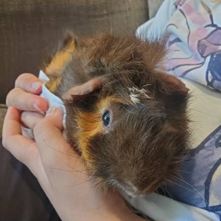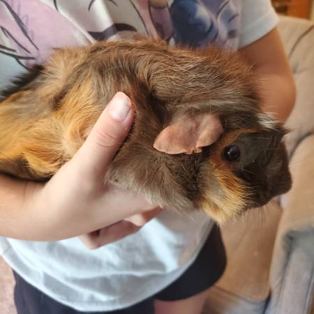 Male guinea pig approximately 3 years old. Sweet. Handled often. Looking for a new home. Comes with starter cage-food.