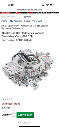 Quick fuel Carburetor HR 680 Vacuum Secondary’s Worked great when removed last year for fuel injection $350