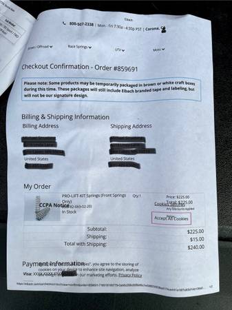 Toyota Tacoma Eibach 2” Pro-Lift springs - auto parts - by owner -...