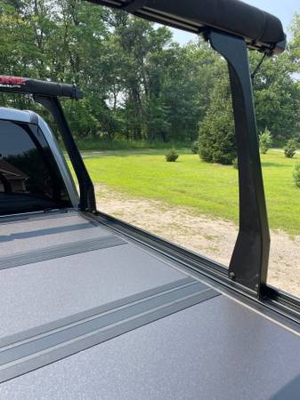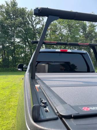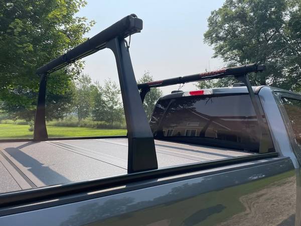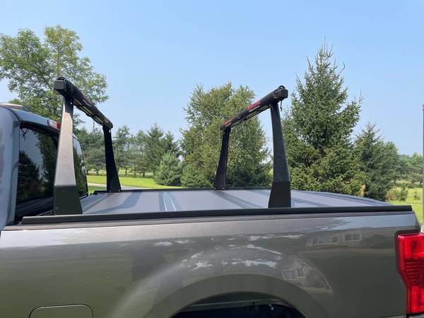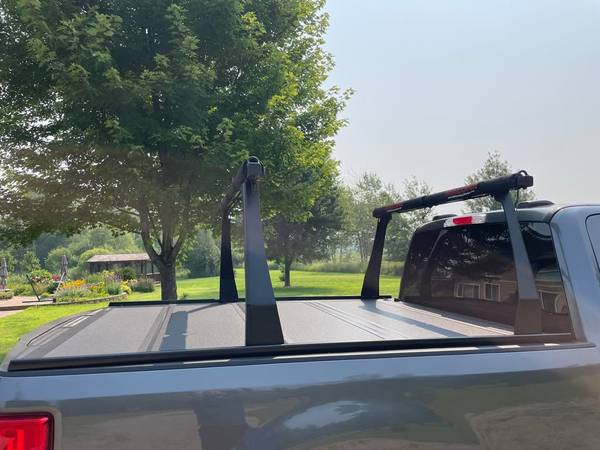 Adarac aluminum series truck bed rack for Ford Super Duty trucks with 6'8" bed. Perfect to transport canoes, kayaks, paddleboards, rooftop tent, ladders, etc. Matte black. All installation hardware and instructions included. Crossbars are 66"' long and come with 4 30" Malone bar pads (two on each bar) (see photos). Rack/pads were purchased/installed in May 2024 and have only been used when transporting rec equipment - stored in garage otherwise. Pickup in Isanti.