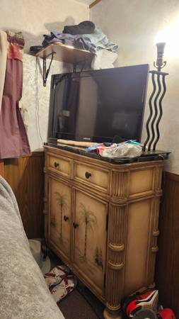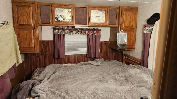 Nice camper, very comfortable. set up in Harris, Mn. Lot rent currently $400/mo includes water, septic, lawn maintenance, trash. Everything works, tires good, ready to roll. Includes most contents, picnic table. Awning in good shape. Contact Lisa at show contact info