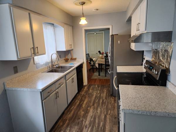 3 rooms first level with 1 room that has the half bathroom. The other 2 downstairs. Recently remodeled kitchen and added new sink in bathroom.