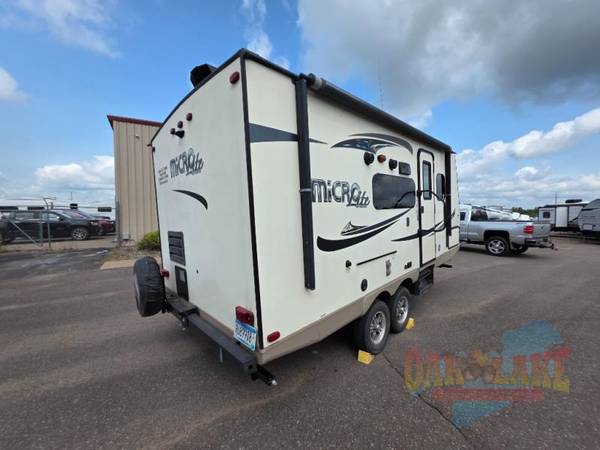 The single slide Flagstaff Micro Lite 21DS travel trailer by Forest River has a front bed and is perfect for a family of three or four.