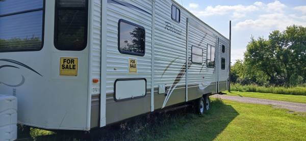 39ft 4 slides bath&1/2 fire place full size refrigerator 4 burner stove big oven 4 chair dining table 2 bucs hideabed tablebuth in buchouse queen bed 2 ac units $23500.00 or make offer call )...