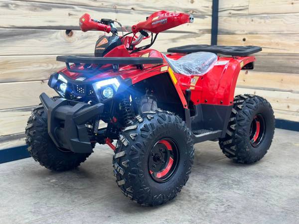 Denago Trailhawk 10 EFI, Trailhawk 10 FI, youth ATV, 120cc ATV, fuel-injected ATV, electric start ATV, automatic transmission ATV, reverse gear ATV, hydraulic disk brakes ATV, dual A-arm suspension ATV, LED lights ATV, red ATV for kids, ATV for 10-year-olds, off-road youth ATV, safe ATV for kids, adjustable throttle limiter, wireless shut-off ATV, key fob ATV, tether safety lanyard, 6-month warranty ATV, Denago ATV, Trailhawk 10 specifications, youth quad bike, 4-stroke ATV, OHC engine ATV, compact ATV, lightweight ATV, ATV with running boards, ATV with hand guards, ATV for beginners, ATV for young riders.