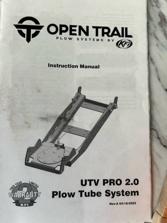 Very nice, nearly new. Open Trail by KFI Snow Plow, 6ft (72") straight blade with rubber flap and corner markers. With Push tubes With mounting plate for a Kawasaki Mule Pro FXR/FXT. Replacement...