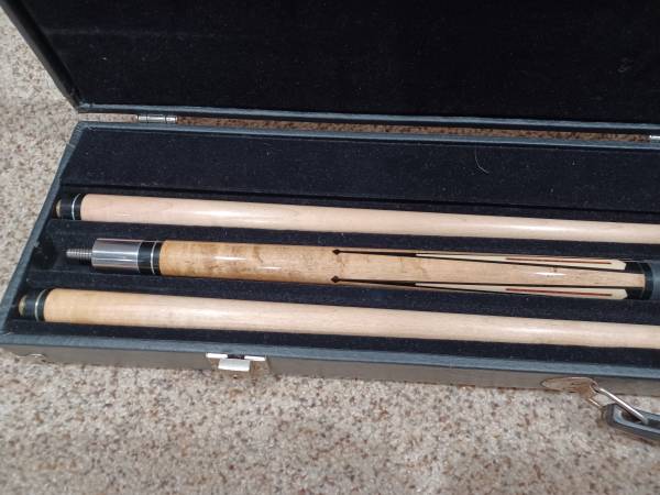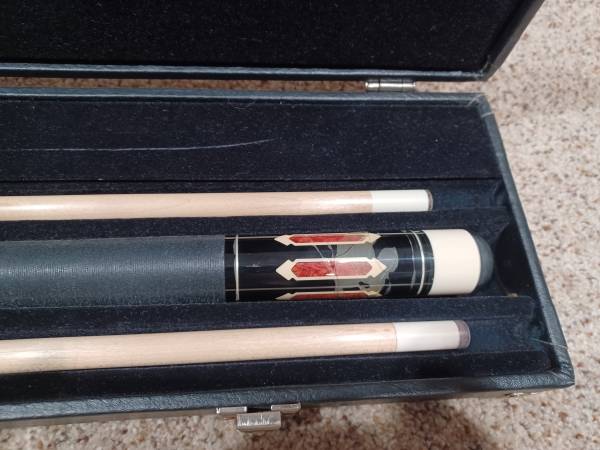 I acquired this cue in 2003 with a damaged butt cap and cracked finish. I contacted Jacoby about it and they stated it is most likely only one of ten made, in the late 90's. I had the butt cap replaced but unfortunately not at Jacoby so the script is gone, learned my lesson on that one. Could still use a butt sleeve refinish. Includes 2 shafts and Huebler 1x2 case withfull length compartment.