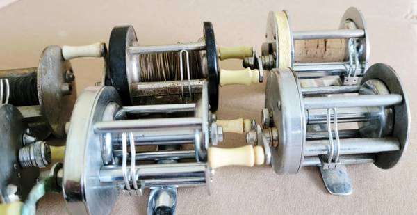 8 VINTAGE 1960s-70s Bait Casting Reals Use or Parts DISPLAY! NICE! ALSO CORK HANDLE RODS $5. EACH! ALSO HAVE CORK HANDLE RODS!