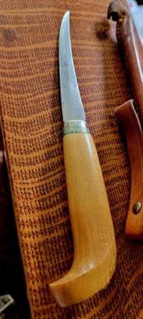 NICE Used Vintage J. Marttiini Rapala Fish 'n Fillet knife with a leather sheath, made in Finland.
