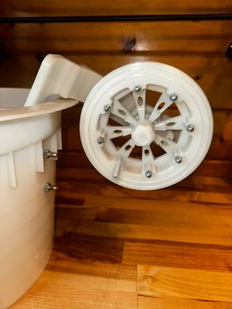 Rattle reel that sits under your ice hole cover inside your shack. Made at our home in Grantsburg WI, we first designed these over 5 years ago to fit our ice fishing lifestyle – which includes a golden retriever and 2 kiddos. Super loud, durable, and can be used for all types of fish. Contact me for additional questions.