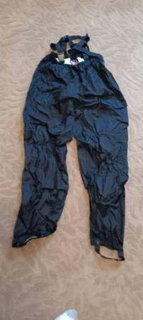 Tour Master 2-piece motorcycle rain suit with bag. In LIKE NEW condition, only used once. Hood rolls up and zips into collar. Men's size 32-34. Made of lightweight and breathable nylon and polyester with reflective accents. Ideal for motorcycle, 4-wheeler or side by side!
