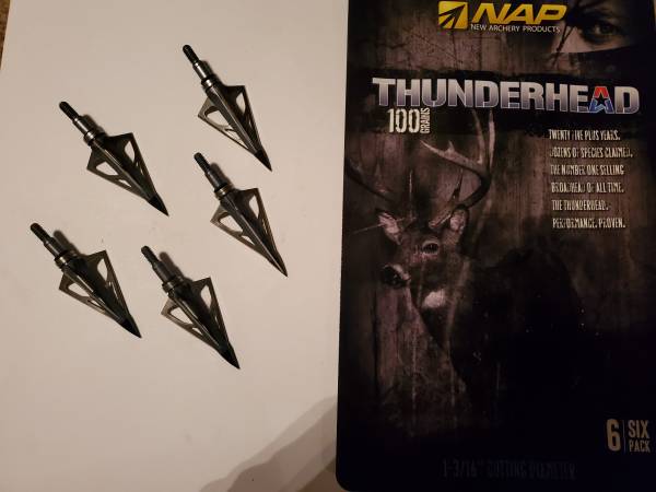 5 new NAP thunderhead 100grain 1-3/16" cut diameter 3 blade fixed heads Broadhead wrench will be included but not shown in pics price is firm