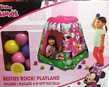 It's time to have a ball with Disney's Minnie Mouse! This easy to inflate playland includes 50 soft flex balls that are either pink, purple, and yellow for plenty of tossing or game fun. The open ball-toss roof and crawl-through design are perfect for young adventurers ages 2 years and up. Bright character graphics will keep your child entertained for lots of imaginative fun. Toss, play, and crawl with Minnie Mouse!