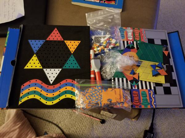 The Amazing Game Board Book - more than 50 games. Great for traveling. For ages 6 to 99. Selling for $10.