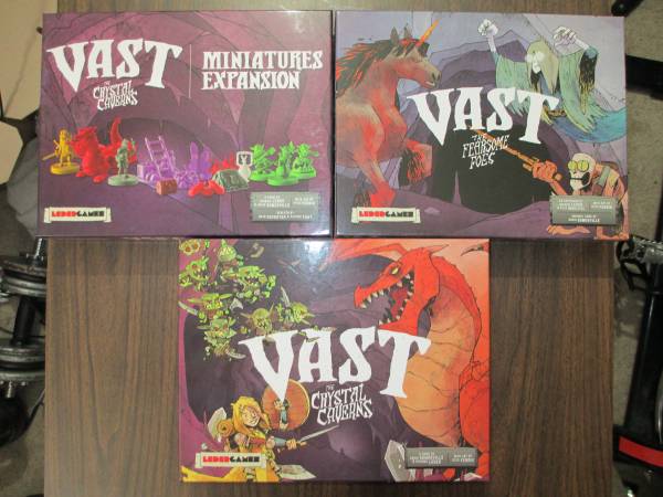 Vast: The Crystal Caverns, the Vast: Fearsome Foes and Vast: Miniatures expansion. $225