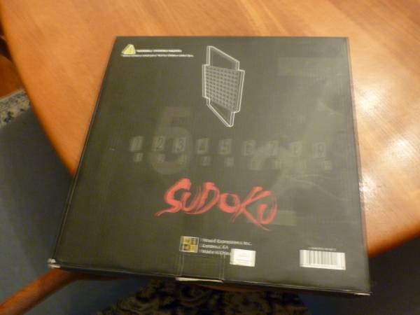 Excellent condition, wooden Sudoku board with two pull out drawers that store the numbers (wooden also). approx 12 X 12 X 2. Fun and well made. Cash Only