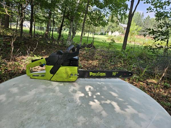 Poulan chainsaw 2150 WOODSMAN 36cc/16"bar Starts good runs good & cuts good. Pickup in Bethel mn. May take your non running saw on partial trade depending on condition.