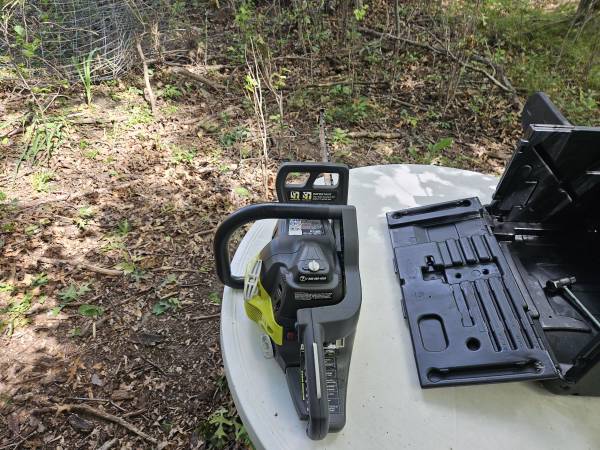 RYOBI chainsaw C4618 46cc/18"bar Anti- vibration. Starts good runs good & cuts good. Come with case & Tool. Pickup in Bethel mn. May take your non running saw on partial trade depending on...