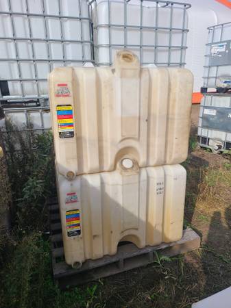 Poly tanks.All had motor lubricants in them. All will need new plugs to factory outlets not being used