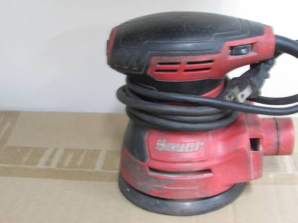 Used 6 speed Bauer 5 inch orbital sander model 1712E -B. This unit has 5 speed settings plus MAX speed lock to select based on what is being sanded, grit being used, and the desired finish. The round rubber pad accepts the discs with the adhesive backing and does not show any cuts, abuse, or wear points. This sander lists new for $65 but routinely sells at Harbor Freight for $39.95. I have found several on Ebay for $29 in used condition.