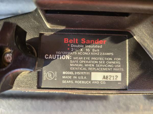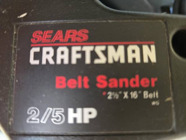 Craftsman 2-1/2"Belt Sander 2/5HP Model 215.117111 Made in USA Features: - 2-1/2" x 16" Belt - 2/5 HP - Double insulated - 110/120 volt 60hz 2.8 amps - Convenient Carrying Case - Owners Manual...