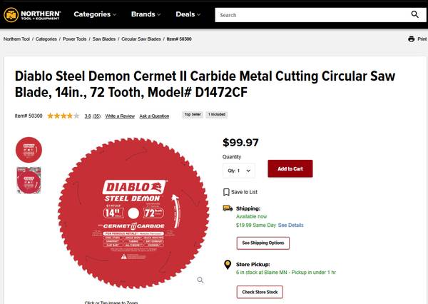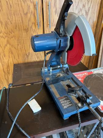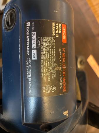 Ryobi 14 Inch Metal Cut Off Machine C356 Type II with Comes with a 14 inch Diablo Steel Demon 72 tooth blade and a 14 inch 30 grit cut off wheel. Please text me at Thank You