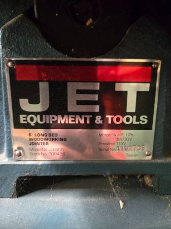 Jet 6in jointer/planer. On wheels for easy moving. Works great! 800.00