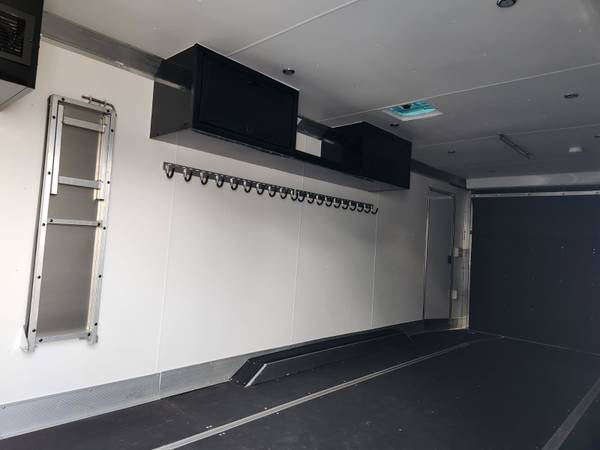 102 wide, 81" ceiling height, This trailer is brand new and a great race trailer. Ask about our 2,000.00 racer rebate.Take off the price or receive a check.