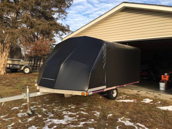 8 1/2 X12 ft triton all aluminum drive on and off with ramp. Plastic ski guides for easy loading Two spare wheels and tires Plus brand new tires and Rims $4500.00 obo.