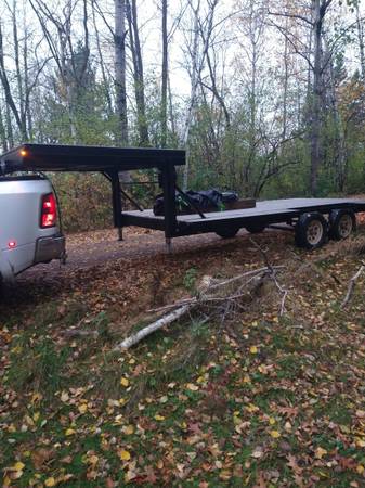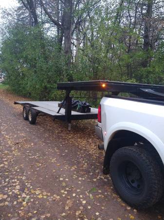 Toy hauler trailer 5th wheel hitch ALSO I HAVE A CONCESSION FOOD TRAILER FOR 6500.00 Food trailer is 14x8 with electric outlets and lights Toy hauler trailer has 1 1/2 alum grate on entire bed lower...